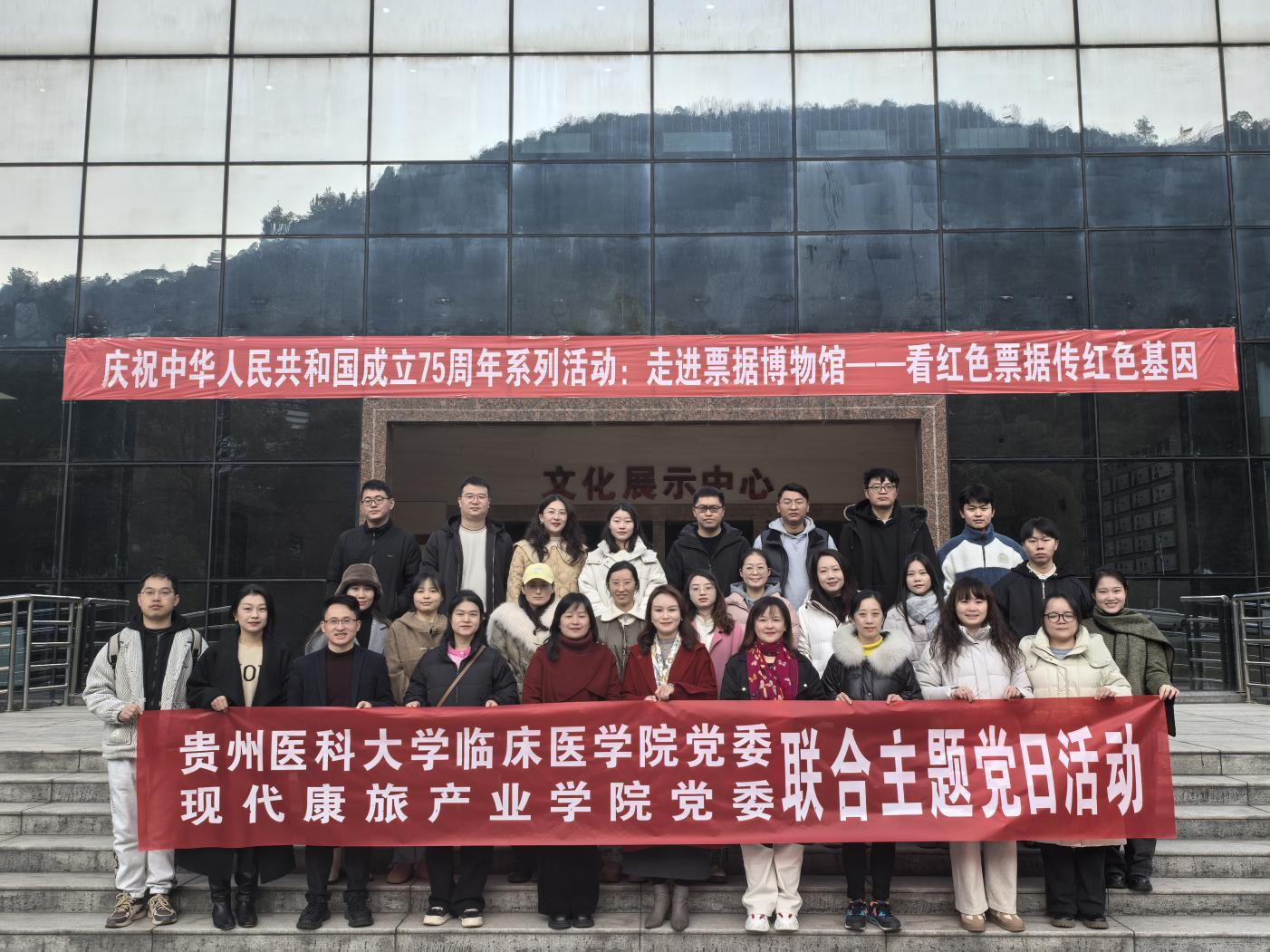 12月16日,贵州医科大学临床医公司党委副书记、纪委书记桂晓玲带队赴公司参观交流,双方联合开展了主题为“看红色票据,传红色基因”的主题党日活动,现代康旅产业公司党委书记雍新艳主持活动。