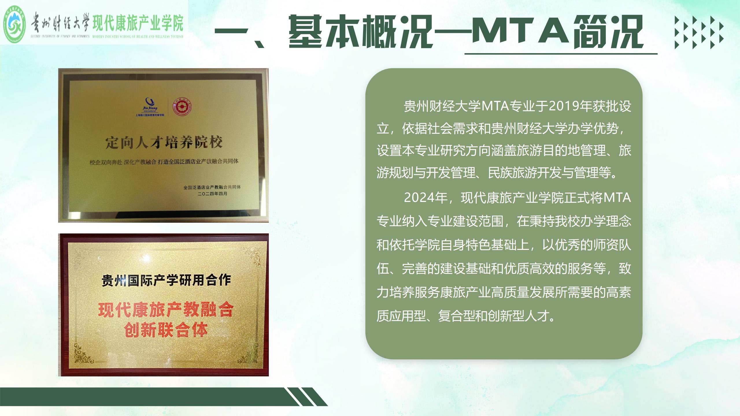 2024年,伟德国际victor1946正式将MTA专业纳入专业建设范围,在秉持公司办学理念和依托公司自身特色基础上,以优秀的团队队伍、完善的建设基础和优质高效的服务等,致力培养服务康旅产业高质量发展所需要的高素质应用型、复合型和创新型人才。