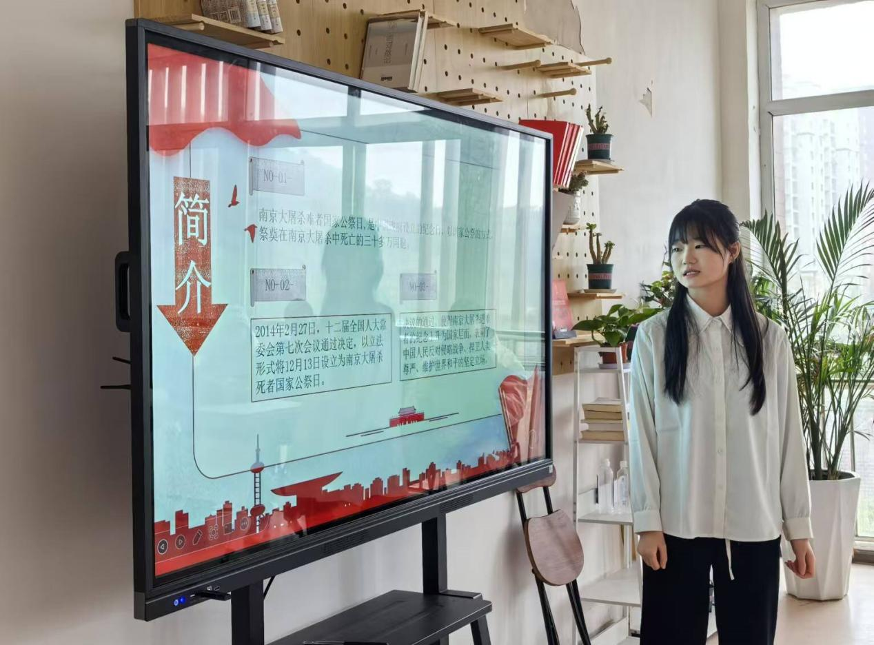 历史是一面镜子、是一本生动的“教科书”、是前人各种知识、经验和智慧的汇总。铭记历史,是为了更好的前行。活动中,宣讲员从国家公祭日设立、铭记历史勿忘国耻、聆听抗战英雄故事、不忘初心振兴中华四个方面给我们强调了铭记历史的重要性。宣讲中通过视频影像和背景音乐,为同学们展示了中国抗战至今的变化与发展。宣讲员以饱满的热情、激昂的语调、生动的语言带领同学们穿越时空,回顾了“一二·九”运动那段波澜壮阔的历史,表达了对先辈的敬仰之情。