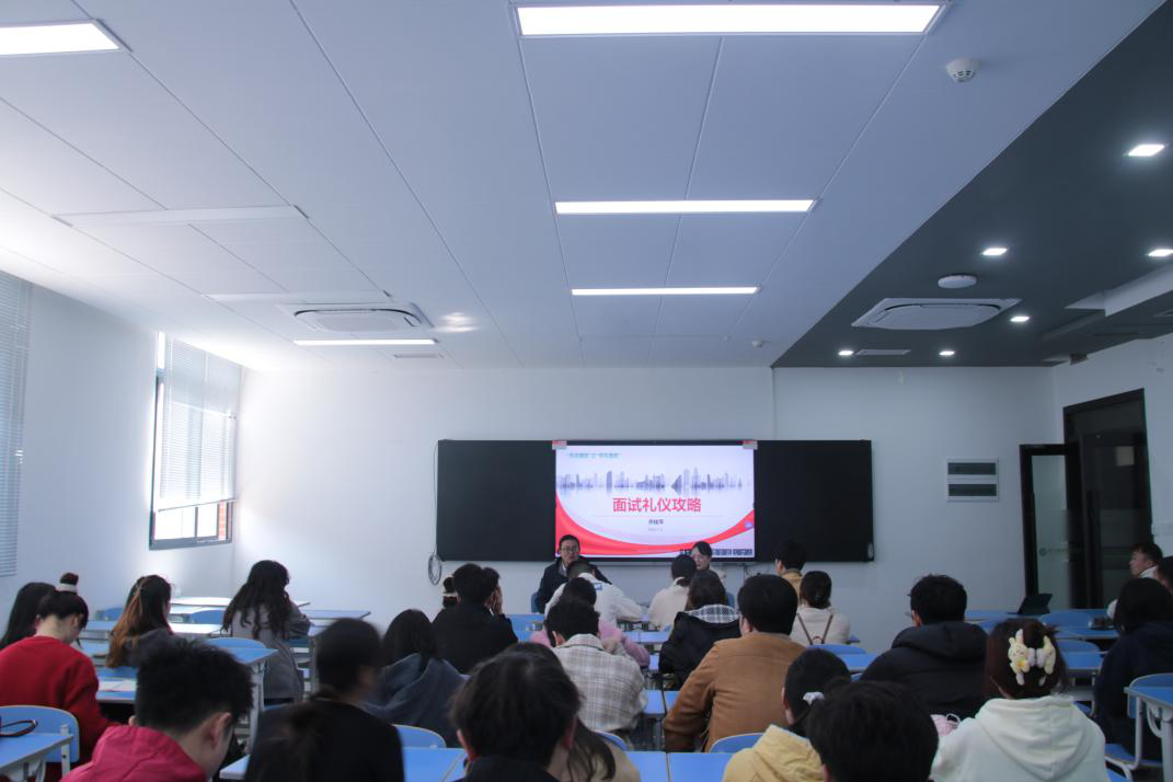 3月11日下午,伟德国际victor1946特邀全国专业人才教育专家委员会高级礼仪培训师乔桂萍老师为同学们讲解在面试过程中的关键注意事项和礼仪技巧,旨在帮助同学们在以后得面试工作中提升个人面试表现,增加成功机会,提升同学们的个人竞争力。座谈会由副经理王超教授主持。