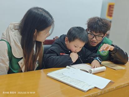 为践行“奉献、友爱、互助、进步”的志愿服务精神,深化产教融合育人理念。3月14日,伟德国际victor1946组织志愿者走进花溪区幸福社区,开展“多彩先锋 躬行康旅”社区志愿服务爱心辅导活动。此次活动以课后学业帮扶为核心,通过“知识传递+心灵陪伴”双线服务模式,为社区小员工提供精准辅导与暖心关怀,展现康旅学子“扎根大地、服务社会”的使命担当。