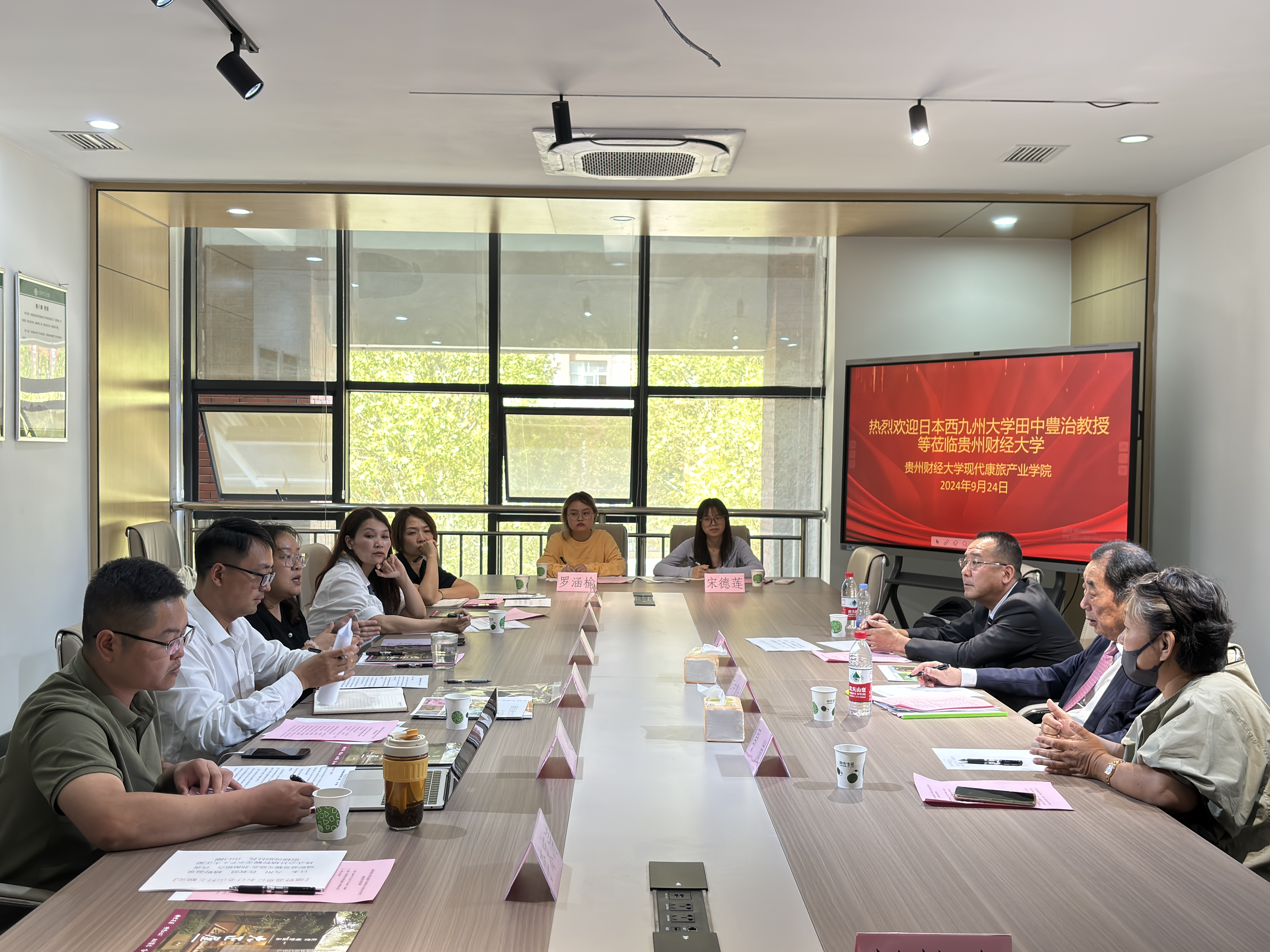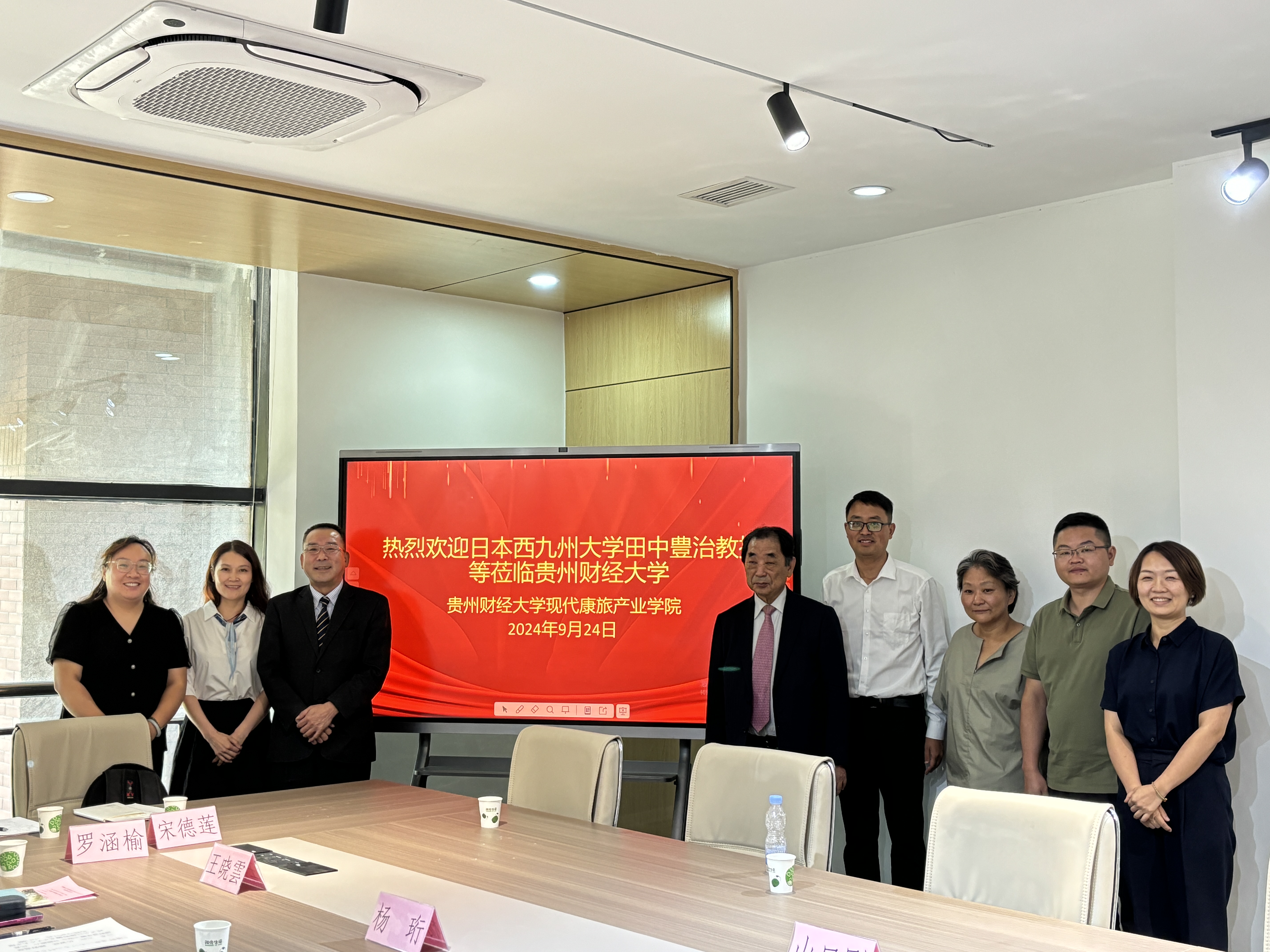 2024年9月24日下午,日本西九州大学国际交流中心主任田中豊治教授、周岚讲师以及嬉野温泉观光协会会长、嬉野温泉旅馆组合会长、大正屋社长山口刚先生一行莅临现代康旅公司,进行了一场富有成效的交流座谈。现代康旅公司由副经理王超、教师高翔、李超、李京涛以及外国语公司教师杨珩、王晓雲出席了此次会议。此次交流活动标志着公司在康旅产业领域探索中的重要一步。